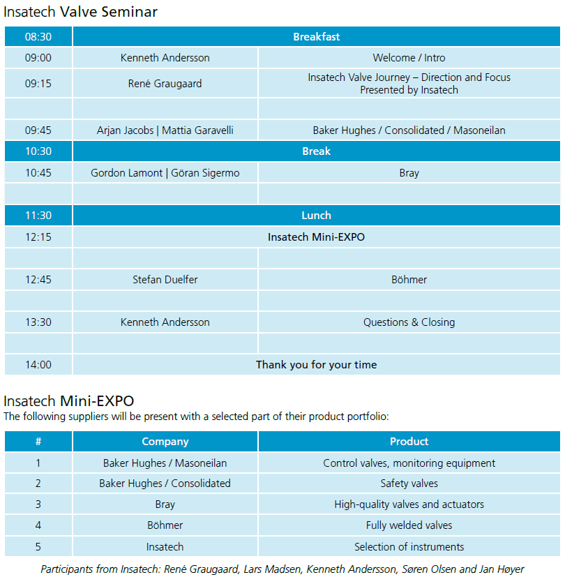 The agenda for the seminar