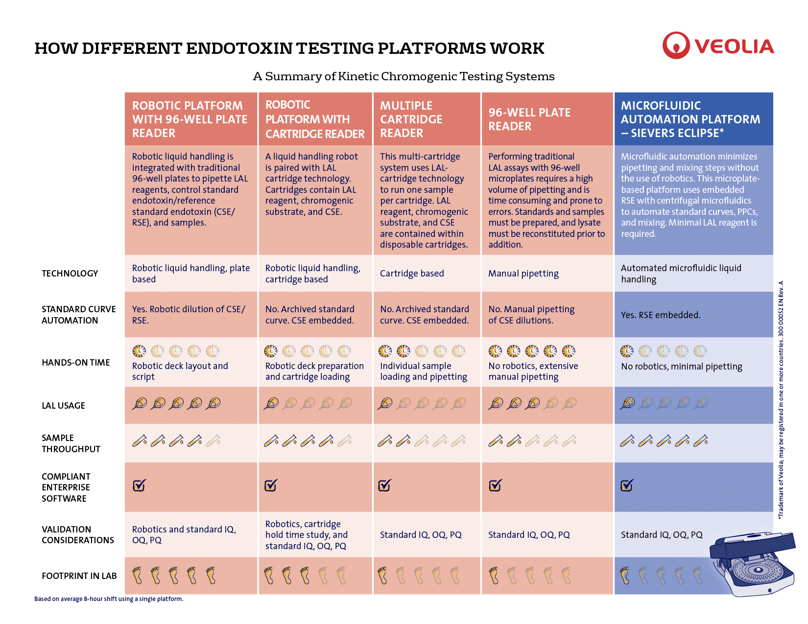 Der findes flere forskellige typer af kinetiske kromatografiske testsystemer. På denne infograf kan du se sammenligningen mellem de forskellige typer af disse, sammen med Eclipse Bakteriel Endotoksin Test (BET) platformen.